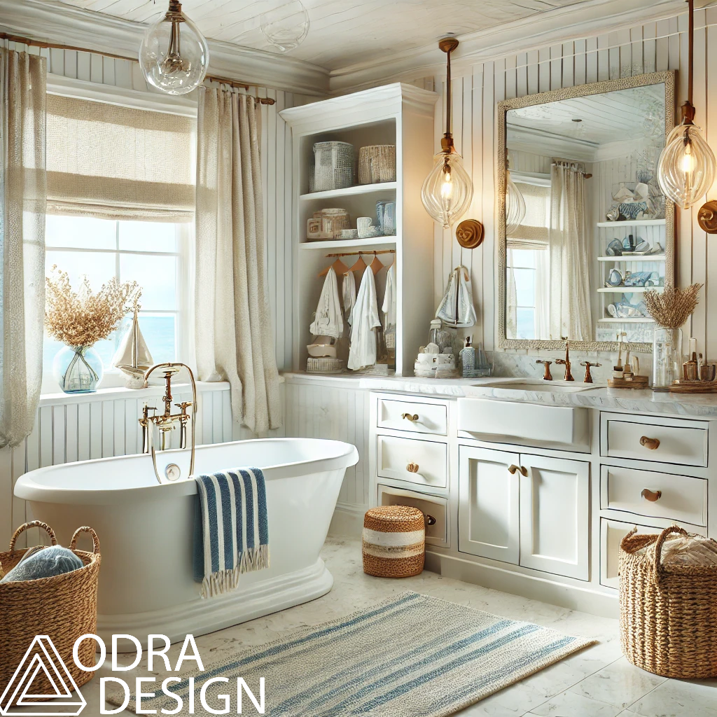 ✅ Dekoracje: Muszle, wiklina, eleganckie lampy, marynistyczne akcenty.