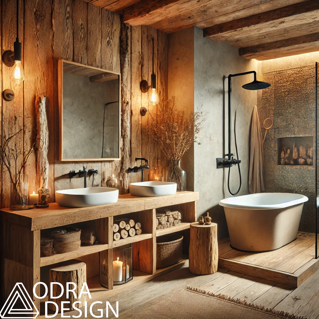 🚿 Atmosfera: Czysta i relaksująca, pełna naturalnych materiałów i ciepłych barw.